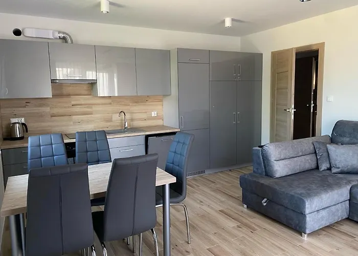 Az Illuzeum Interactive Exhibition területétől 8 perces sétára fekvő Apartamenty Relax apartman teraszt tartalmaz főzőfülkével. Az apartman 2 km-re fekszik az Łeba Park vidámpark területétől, és közvetlen hozzáférést biztosít a Slowinski Park Narodowy. Obwod Ochronny térségéhez.